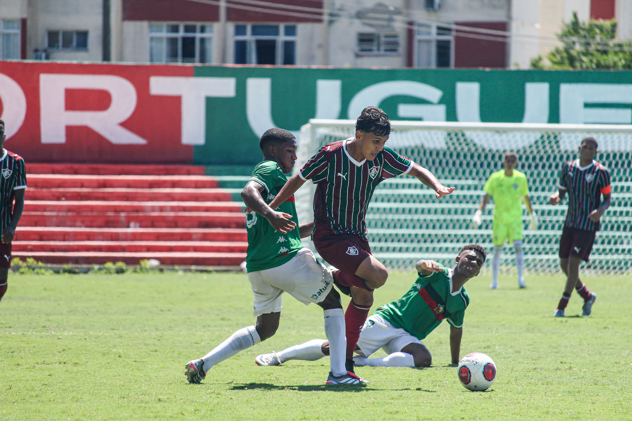 Os Moleques de Xerém reassumiram a liderança do Campeonato Carioca Sub-17. Com gols de Capato e Kauã Richard, o Fluminense fez 2 a 0 sobre a lanterna Portuguesa, neste sábado (28/03), no Estádio Luso-Brasileiro, pela terceira rodada. A vitória deixa o Tricolor com nove pontos e 100% de aproveitamento.Após a maior goleada da competição, o 7 a 0 sobre o Maricá, no Estádio Marcelo Vieira, em Xerém, o Flu venceu a pior defesa logo aos oito minutos. Danilo Melo rolou para o meio da área e a bola passou pelo artilheiro João Pedro até chegar a Capato, que só empurrou para o gol. Foi seu segundo no torneio.Em cobrança de escanteio de Danilo Melo, Riquelmy, de cabeça, carimbou a trave aos três minutos da segunda etapa. Lançado aos 35 por João Pedro, Kauã Richard, vindo do banco de reservas, cabeceou para desencantar. O goleiro Samuel Jorge, por sua vez, garantiu a meta ilesa para a equipe comandada pelo técnico Thiago Macedo.