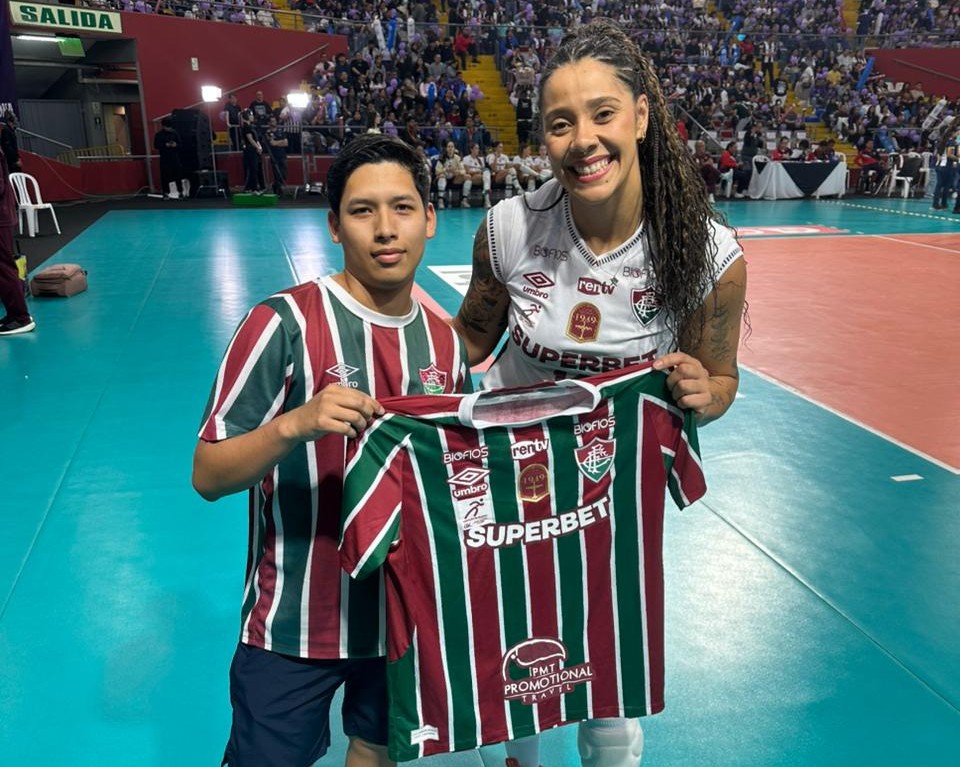Mesmo em outro país, o Fluminense teve torcida no torneio “Noite Branca e Azul”, em Lima. O peruano Deus Acosta, de 24 anos, foi ao Coliseo Eduardo Dibós com a camisa tricolor para apoiar as Guerreiras do Vôlei durante a vitória contra o Regatas Lima, neste domingo (26/10), e foi presenteado com uma nova armadura pela oposta Ariane.Filho de pai brasileiro, Acosta aproveitou a oportunidade do Fluminense disputar um torneio em sua cidade para apoiar a equipe, mesmo em um ginásio com mais de quatro mil torcedores do Alianza Lima.“Ter o Fluminense aqui no Peru é a melhor experiência. Sou a única pessoa com a camisa do Fluminense, estou com meus amigos e foi muito bom poder assistir a uma vitória do time aqui no meu país. Morei dois anos no Rio de Janeiro e virei tricolor para sempre, acompanho o Brasileirão e os outros esportes também. Fiquei muito feliz em ganhar esta linda camisa”, disse o jovem.O Fluminense participou do torneio Noite Branca e Azul, competição organizada pelo Alianza Lima para apresentação da equipe para sua torcida. O campeonato foi realizado no sábado e domingo (25 e 26 de outubro), em Lima, no Peru. O Tricolor foi derrotado pelos anfitriões por 3 sets a 1 e venceu o Regatas Lima por 3 sets a 0.Texto: Comunicação/FFCFoto: Comunicação/FFC