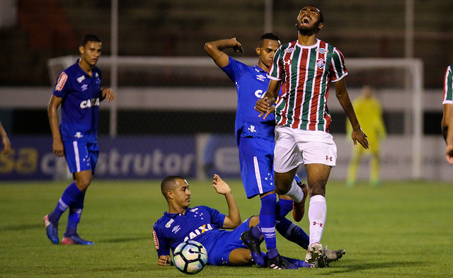 O Fluminense empatou em 1 a 1 com o Cruzeiro na noite desta terça-feira no estádio Giulite Coutinho pelo Campeonato Brasileiro Sub-20. O gol do tricolor foi marcado por Lucas, aos 34 minutos do primeiro tempo. Independente do resultado entre São Paulo e Chapecoense, que jogam na noite desta quarta-feira em São Paulo, o Flu segue na briga por uma vaga na semifinal da competição. O Cruzeiro lidera com sete pontos, seguido do Fluminense com quatro, São Paulo três e Chapecoense ainda sem pontuar. Sendo que esses dois têm um jogo a menos.